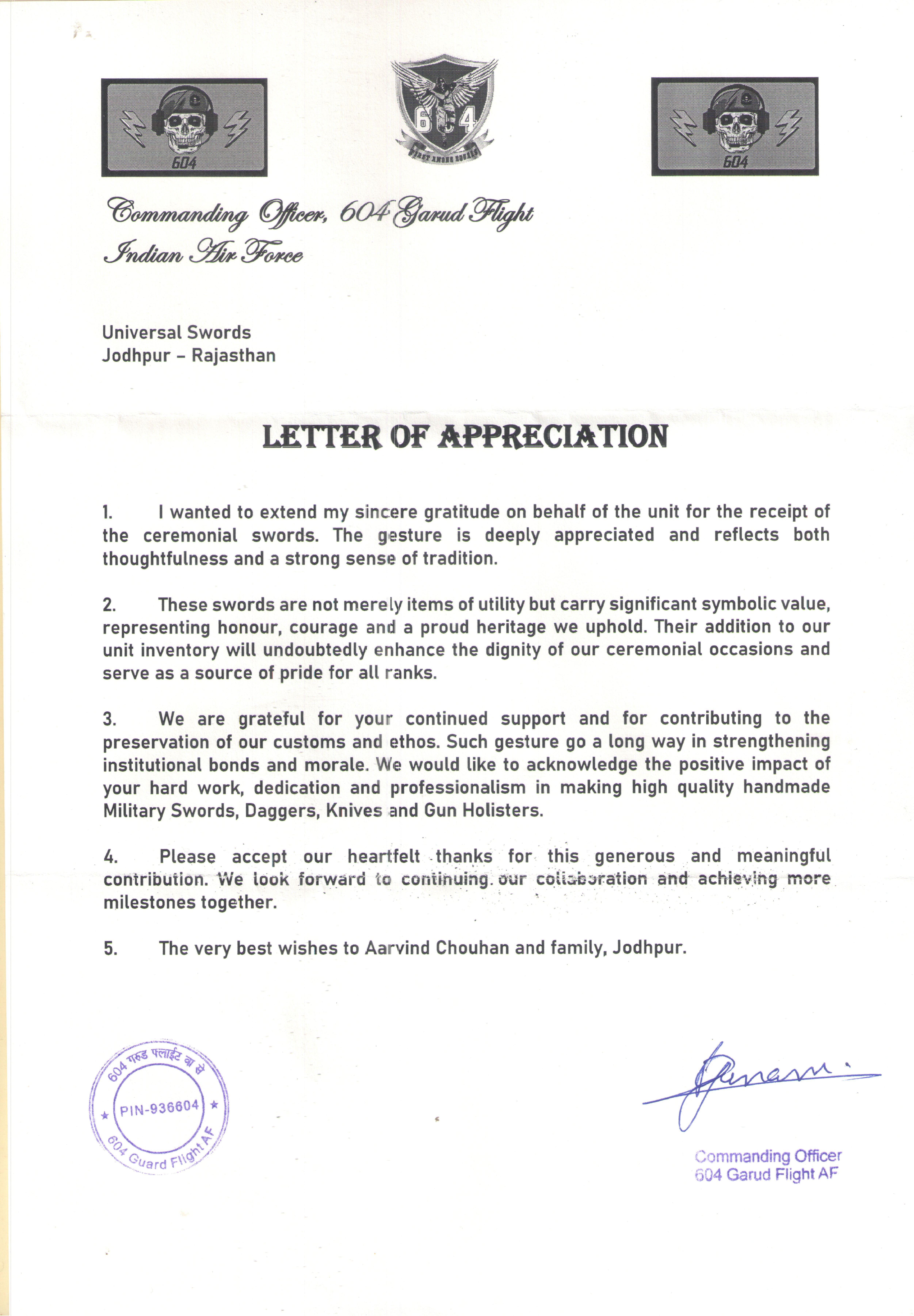 Certificate of Appreciation - Tailor & Arms (Sweden)